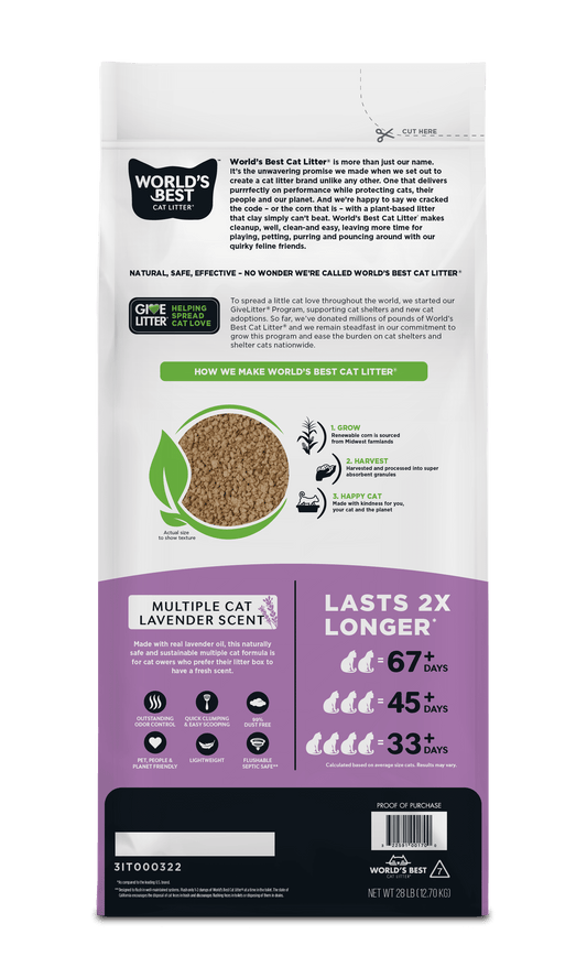 Lavender Scented Cat Litter | Flushable | 99% Dust Free | Clumping | 28 Lb